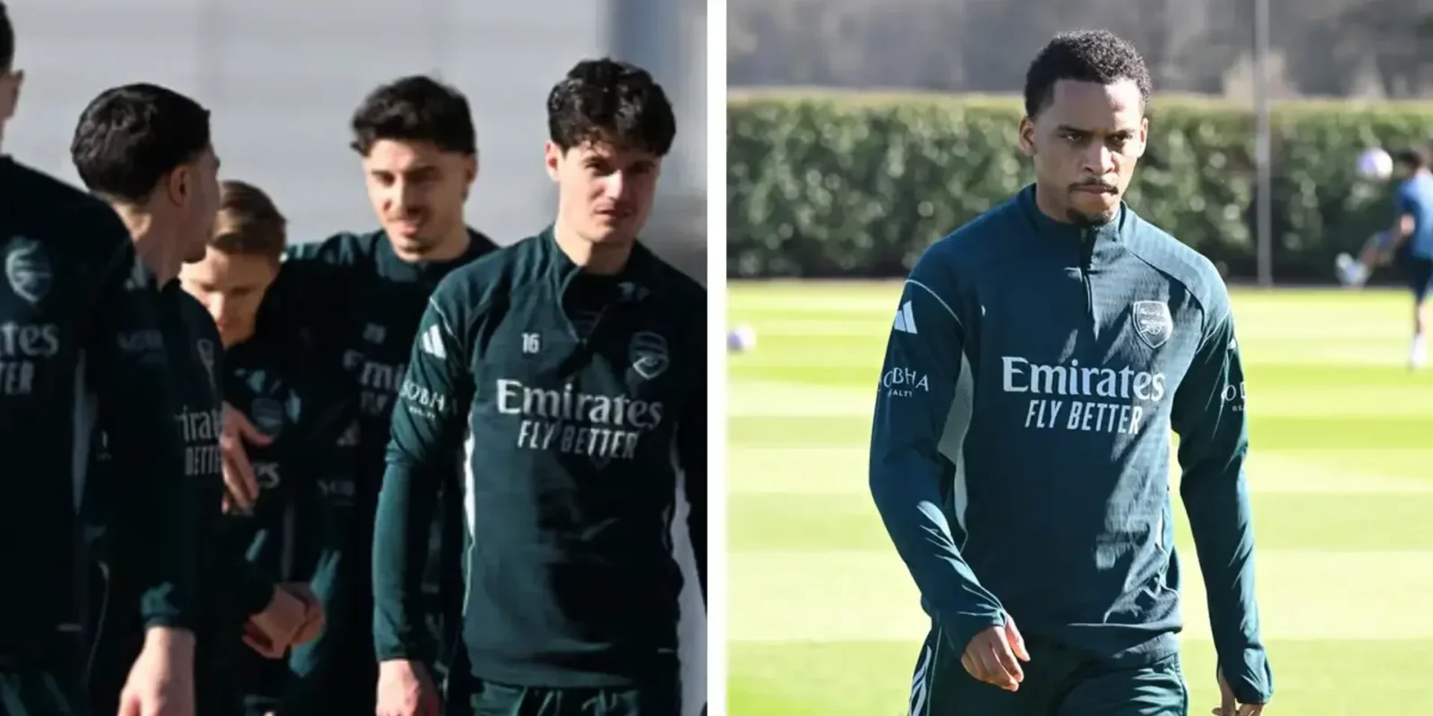 شوهد كل من مارتن أوديجارد وجوريان تيمبر يتدربان مع الفريق الأول لأرسنال قبل نهائي كأس كاراباو ضد مانشستر سيتي.