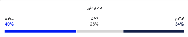 نسبة فوز برايتون 40%، ونسبة فوز توتنهام 34%، ونسبة التعادل 26%.