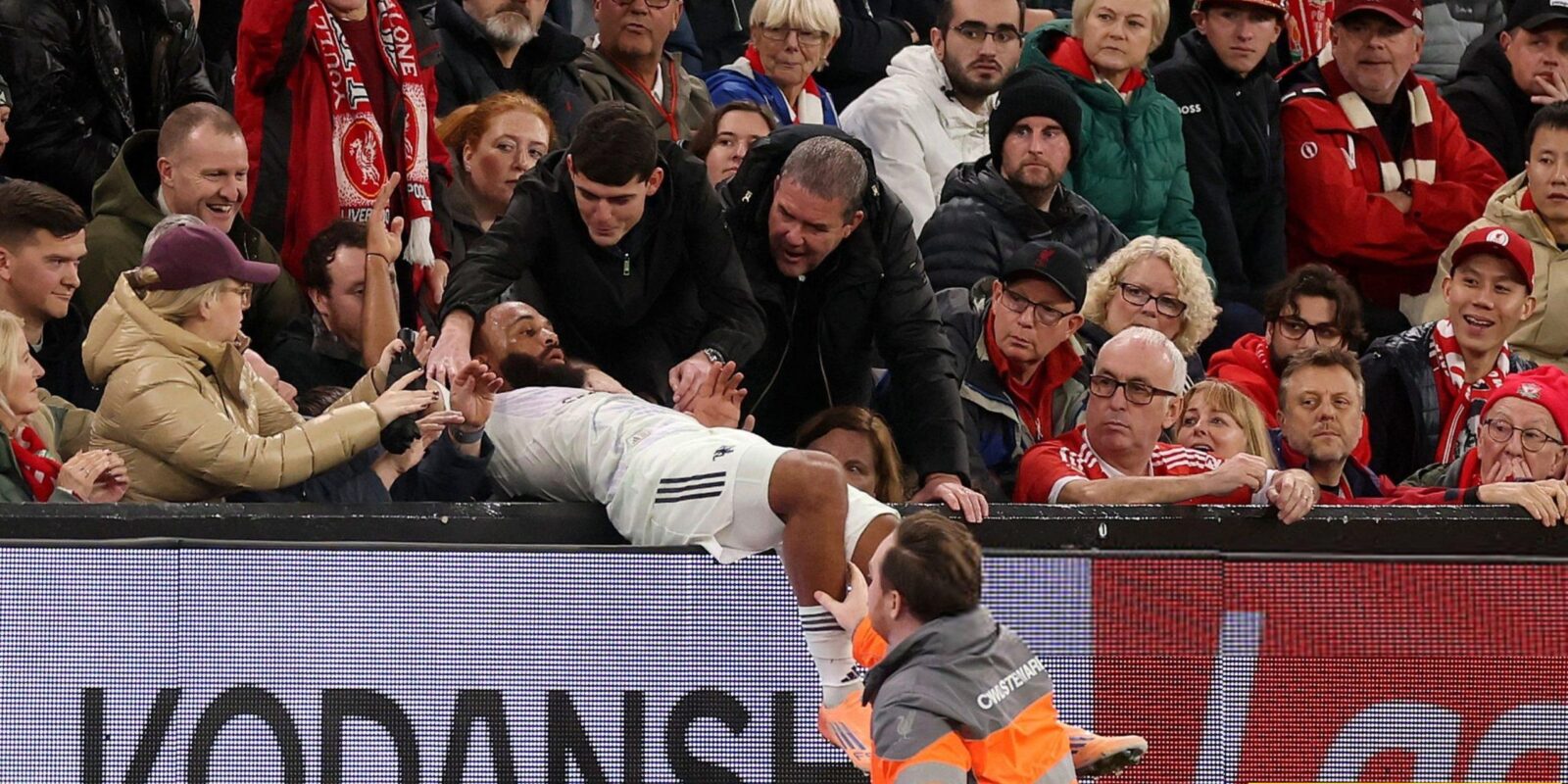 وأثناء اللقاء سقط مبيومو في مدرجات الأنفيلد بعد كرة سريعة لم يلتحق بها، وقامت جماهير الريدز بمساعدته على النهوض والعودة للملعب.