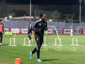 يعقد محمد مصيلحي المدير الفني لفريق الأهلي محاضرة للاعبين قبل انطلاق عمليات الإحماء لمراجعة خطة اللعب والتأكيد على العديد من الجوانب الخططية والفنية استعدادا للمباراة.