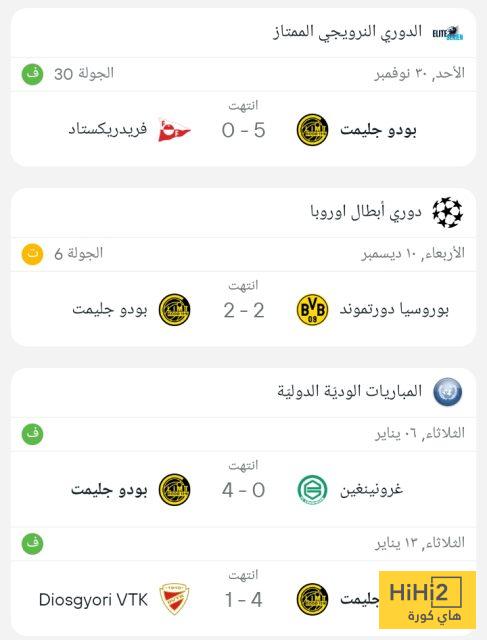 وجاءت نتائج بودو غليمت السابقة كالتالي :